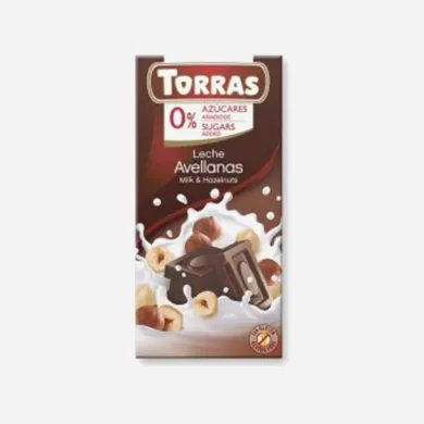 Torras mliečna čokoláda s lieskovými orieškami 75 g. Mliečna čokoláda s lieskovými orieškami bez lepku, bez stužených tukov a bez pridaného cukru sa sladidlami. Obsahuje iba prírodné cukry. zloženie: Sladidlo (maltitol), kakaové maslo, sušené mlieko (14%), kakaová hmota, lieskové orechy (12%), emulgátor (sójový lecitín) a aróma (vanilka). použitie: Obsahuje zdroj fenylalanínu. Zvýšená konzumácia môže mať laxatívne účinky. skladovanie: Skladujte v suchu pri teplote do 25 ° C. alergény: Mlieko, orechy, sója.